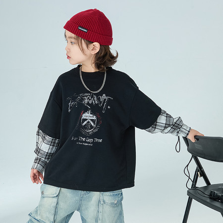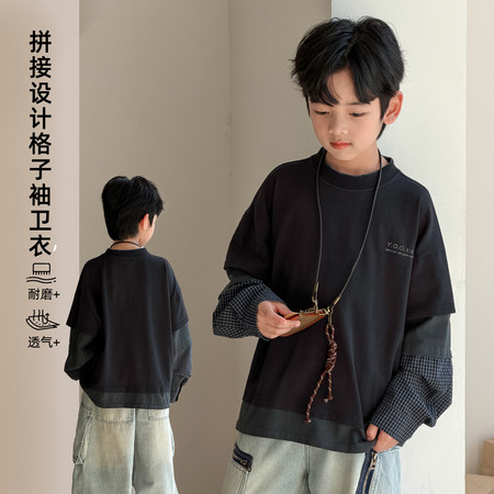 1*9下载视频“LBCW9051假两件格子袖卫衣”