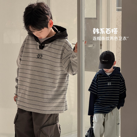 q*6下载“LBCW9040条纹数字07假两件连帽卫”图片包